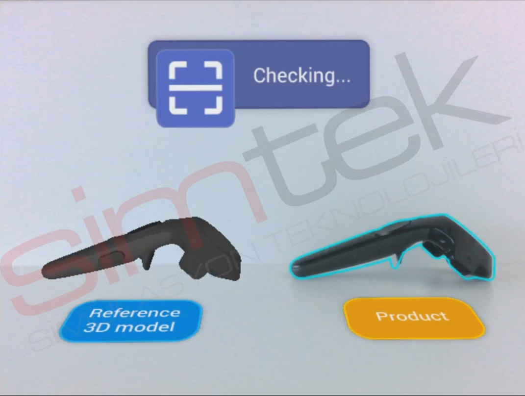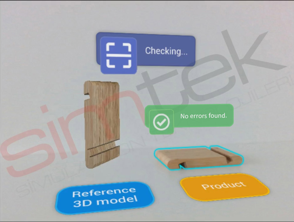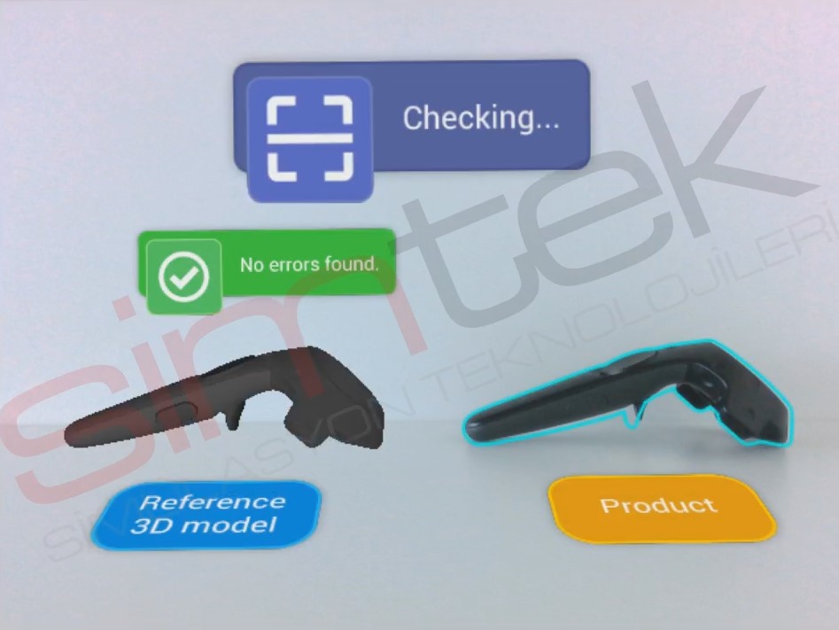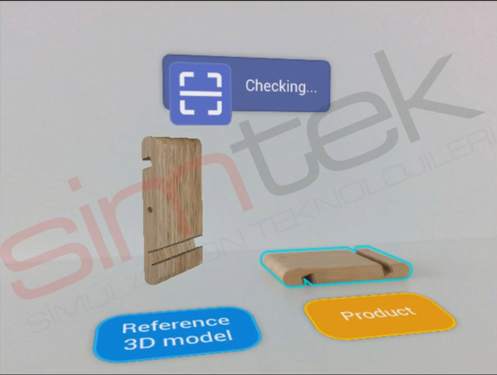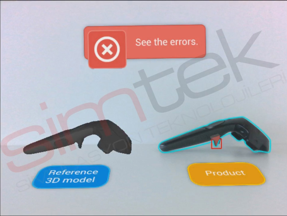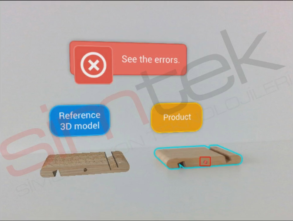 The analysis module checks whether the features in the 3D model are in the product. If the parts in the model are not found on the product or are produced incorrectly, the algorithm detects errors. Errors are marked and displayed to the user on the grahical user interface. The system works with a computer and a camera.