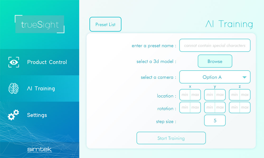 With trueSight, 3D models are processed with machine learning algorithms. TrueSight, which matches the image from the camera with the trained object, gives feedback the user of the result with a visual interface.